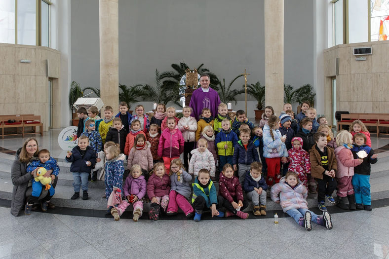Paní učitelky z Křesťanské mateřské školky přivedly děti do kostela