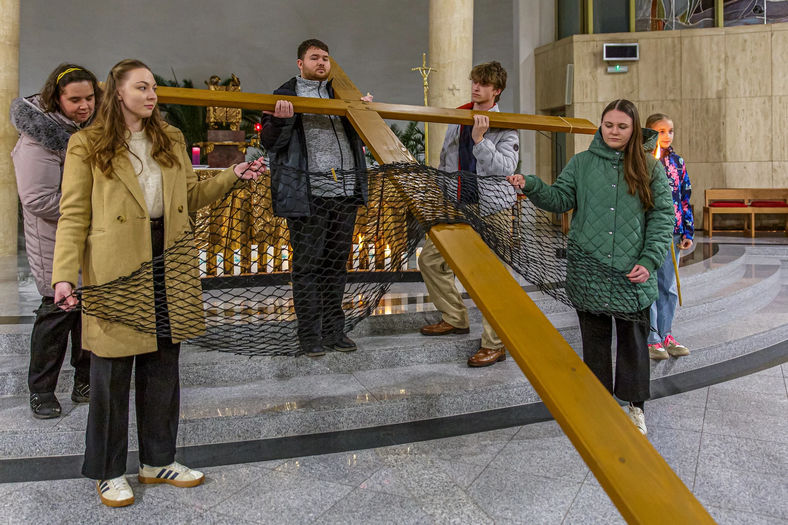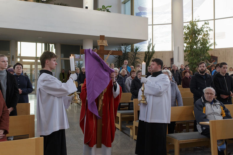 Bolestný pátek - Po mši svaté měla následovat křížová cesta ulicemi města. Počasí ale způsobilo, že se vše uskutečnilo v kostele. Jednotlivé skupiny věřících přednášeli své modlitby, přímluvy a prosby jménem všech přítomných. Před vztyčením kříže všichni přinášeli své prosby formou kolíčků, které připevňovali ke kříži.
